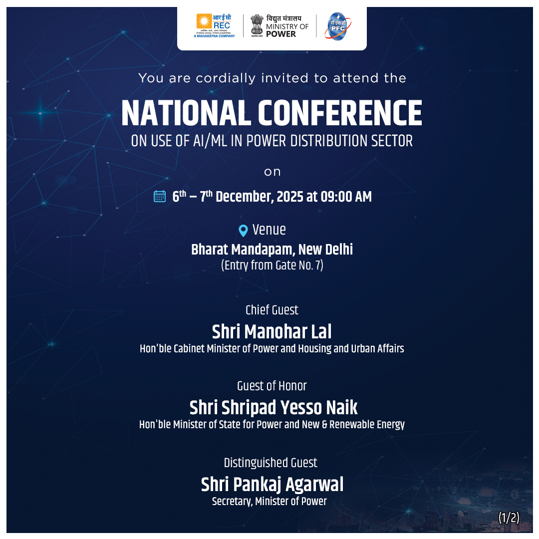 विद्युत मंत्रालय, पुनर्गठित वितरण क्षेत्र योजना (आरडीएसएस) के अंतर्गत विद्युत वितरण क्षेत्र में आर्टिफिसियल इंटेलिजेंस (एआई) और मशीन लर्निंग (एमएल) प्रौद्योगिकियों के उपयोग पर केंद्रित एक राष्ट्रीय सम्मेलन का आयोजन कर रहा है। इस सम्मेलन का उद्देश्य स्मार्ट मीटर डेटा विश्लेषण, एकीकृत आईटी/ओटी प्रणालियों और स्मार्ट होम ऑटोमेशन समाधानों के अत्याधुनिक उपयोगों को प्रदर्शित करना है जो देश भर में सभी डिस्कॉम कंपनियों में नवाचार को बढ़ावा देते हैं, परिचालन दक्षता में सुधार करते हैं और उपभोक्ता संतुष्टि में वृद्धि करेंगे।